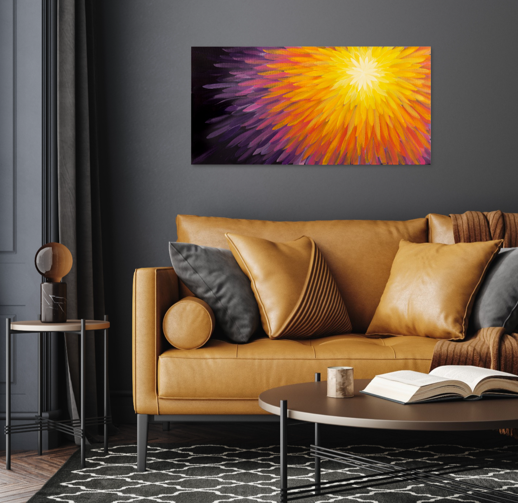 Original art using acrylics and stretched canvas, protected with UV-resistant, non-removable, archival matte varnish.
