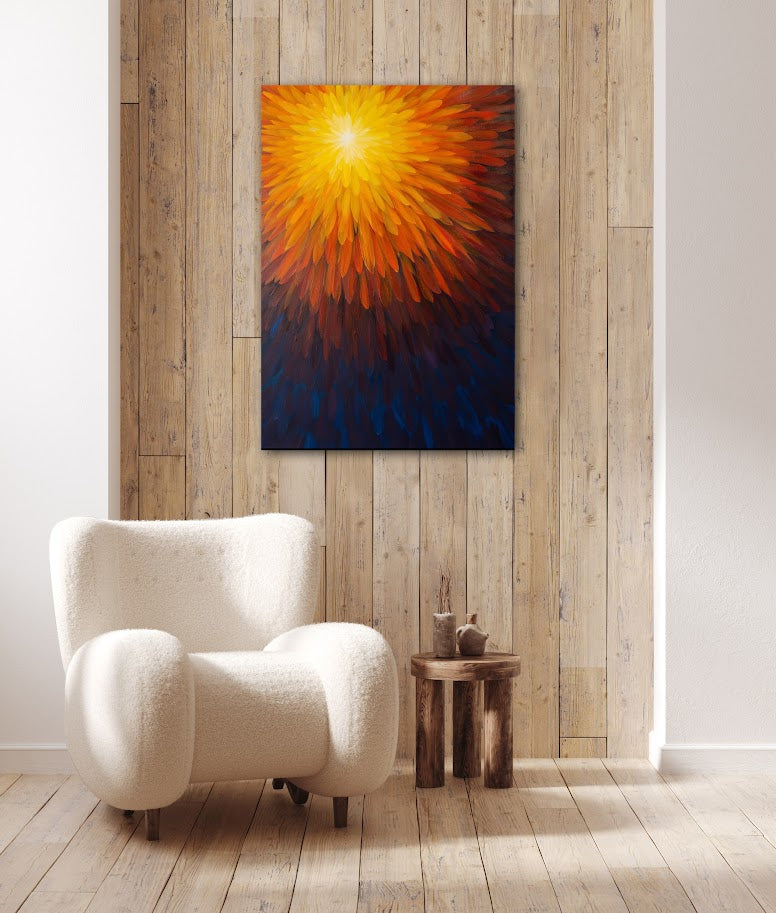 Original art using acrylics on repurposed stretched canvas, protected with UV-resistant non-removable archival gloss varnish.