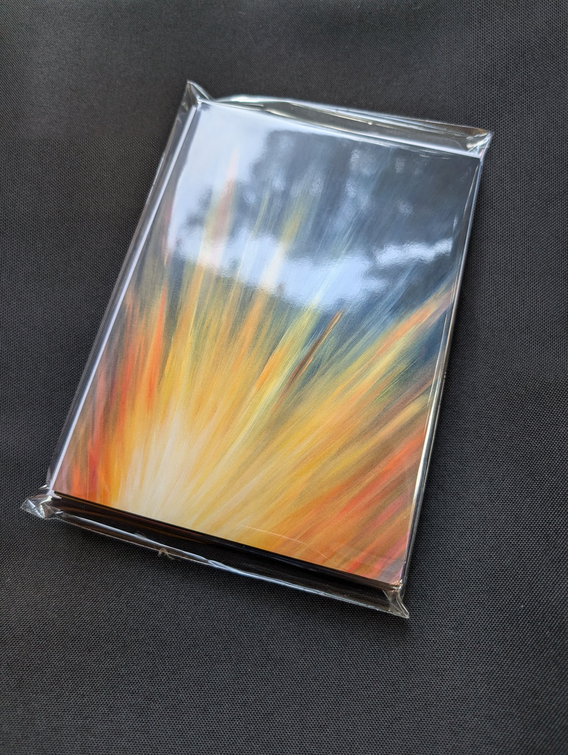 8 cards and 8 envelopes per pack, each feature 8 different artworks. Printed locally in Calgary, Alberta.