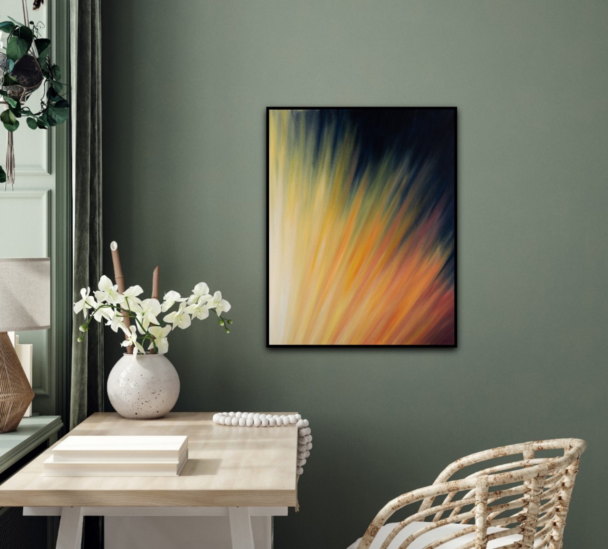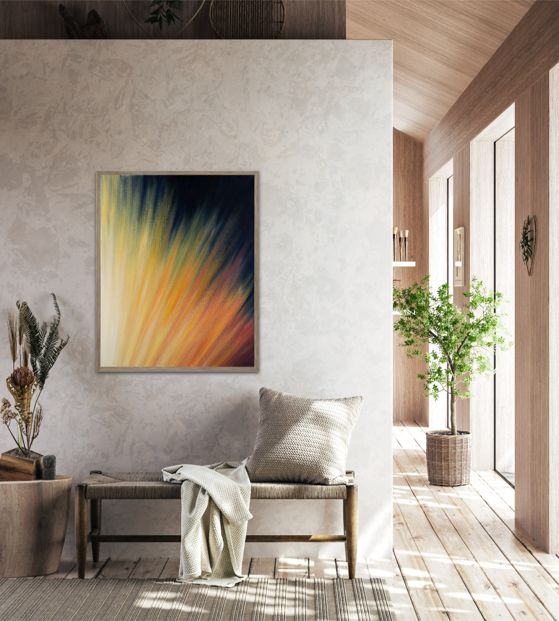 Original art using acrylics on stretched canvas, protected with non-removable, UV-resistant, archival gloss varnish.