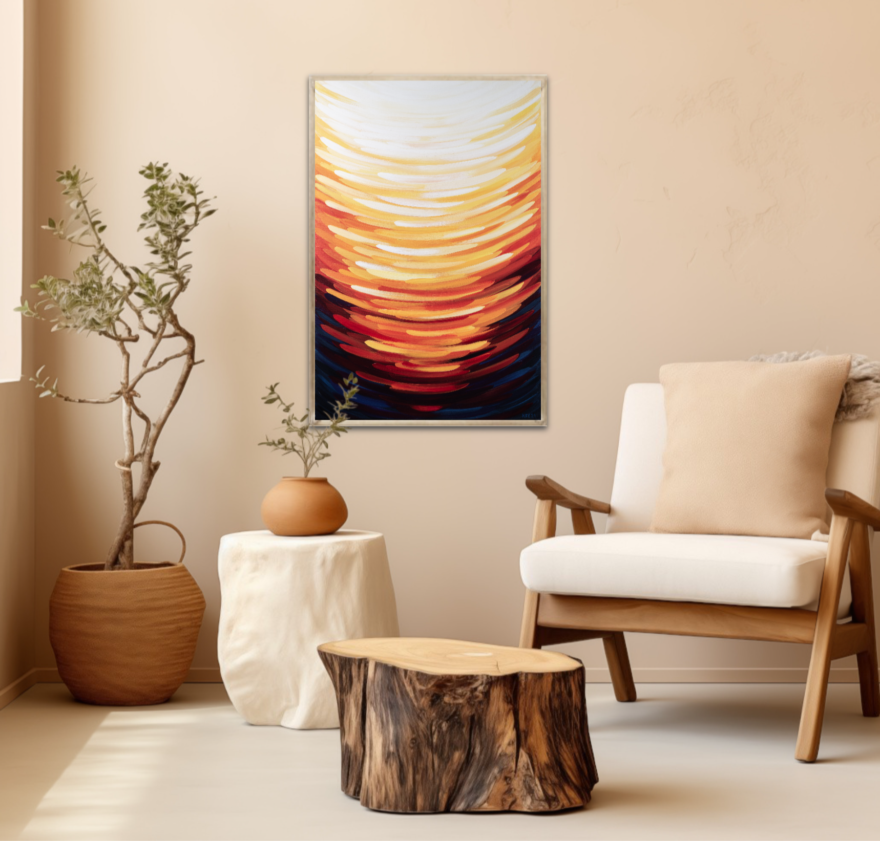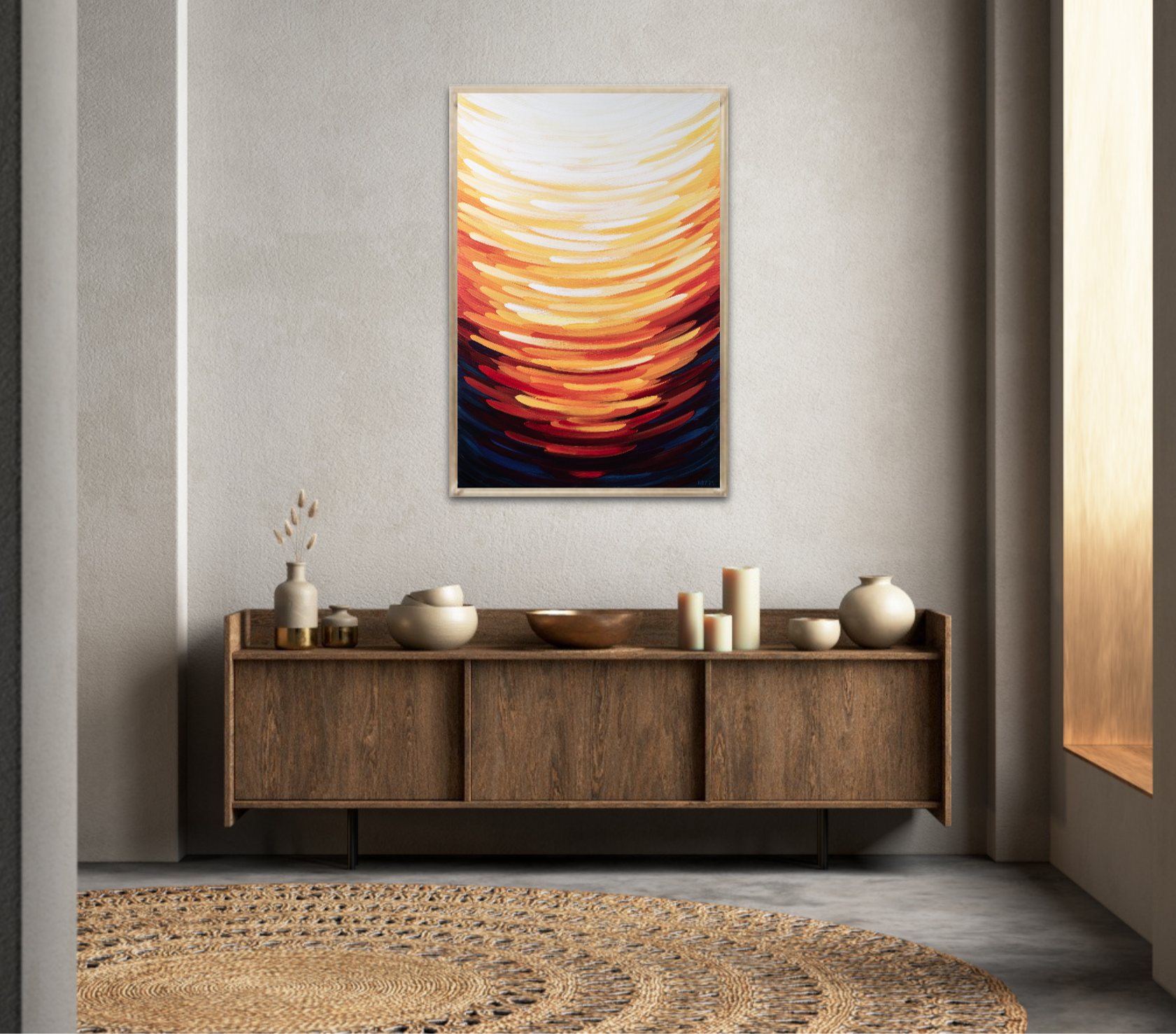 Original art using acrylics on stretched canvas. Protected with non-removable, archival, UV-resistant gloss varnish.