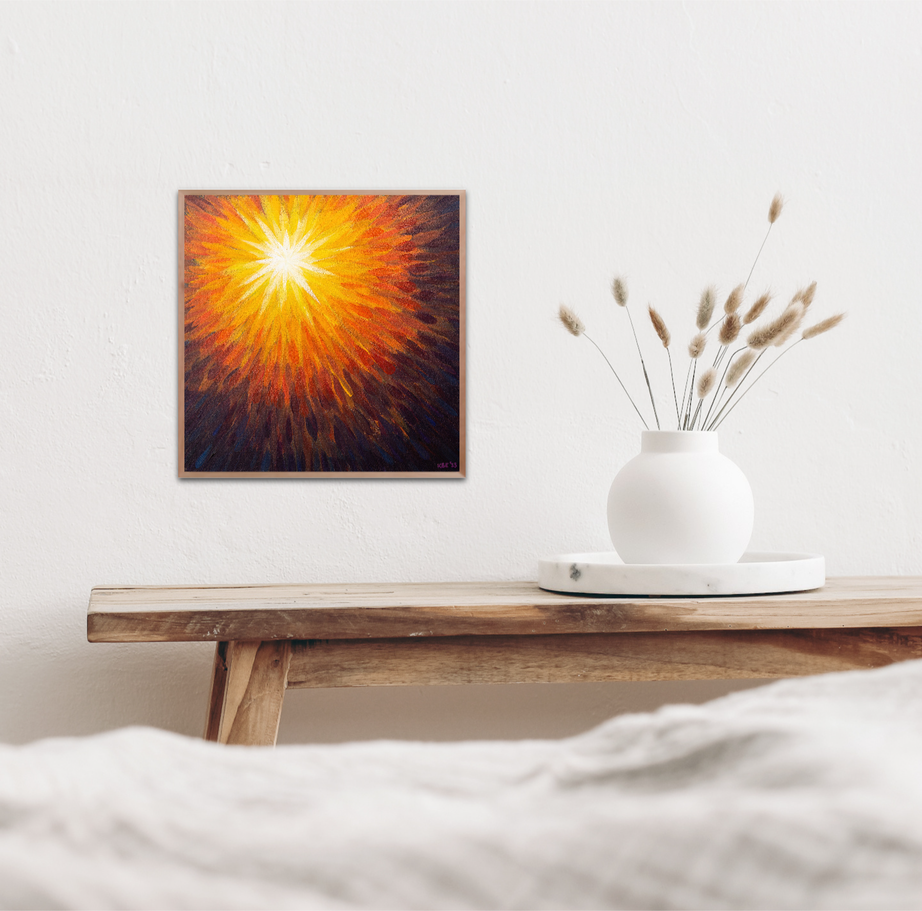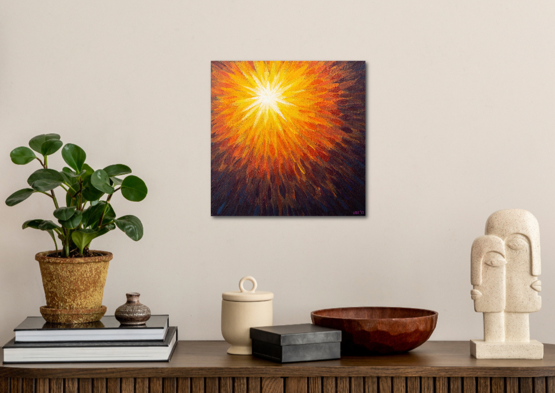 Original art using acrylics on canvas panel. Protected with non-removable, archival, UV-resistant gloss varnish.