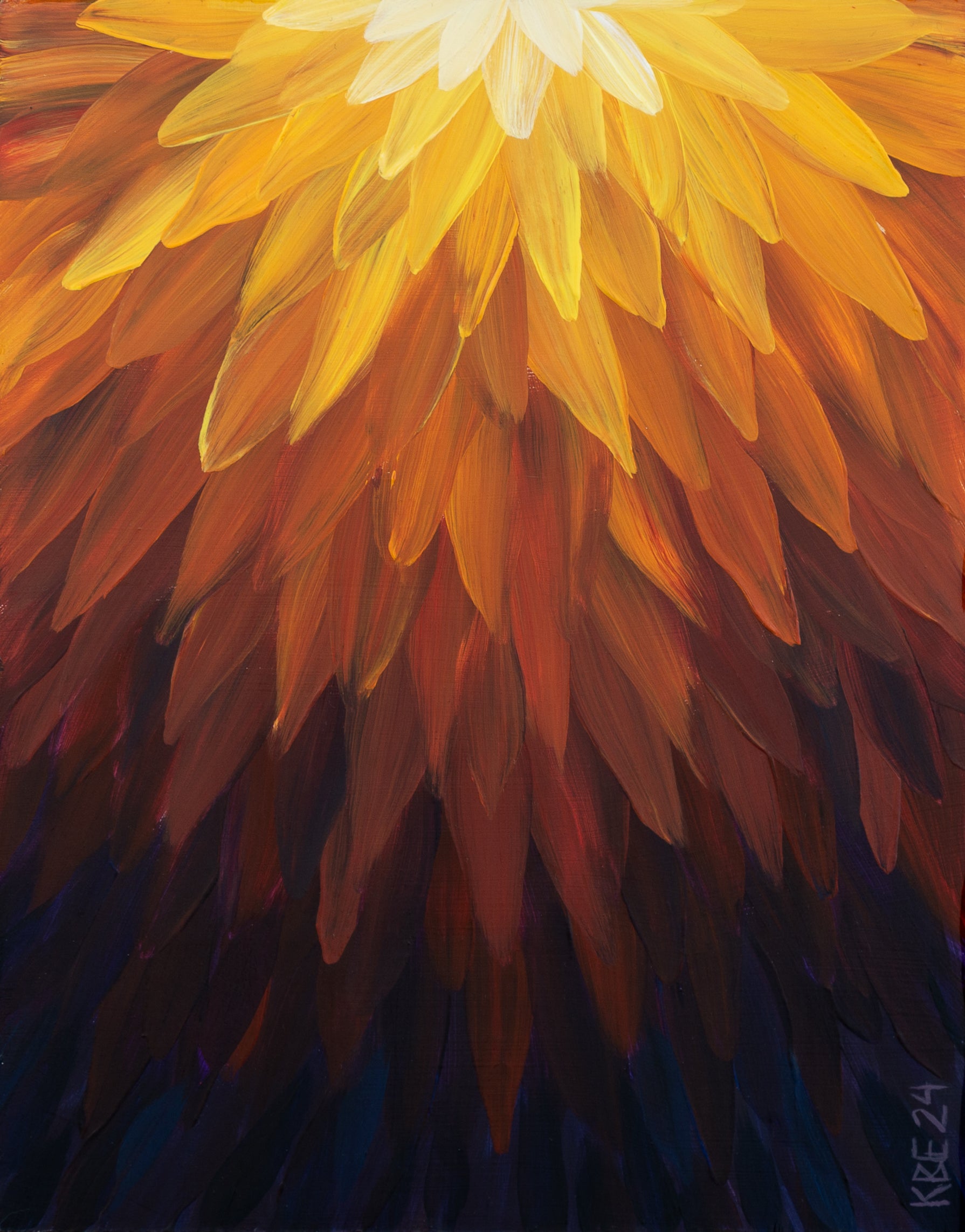 Original art using acrylics on hardboard. Protected with non-removable, archival, UV-resistant gloss varnish.